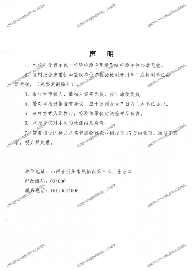 忻州城區(qū)公共供水水源水、出廠水、管網(wǎng)水、管網(wǎng)末梢水2025年4月份水質(zhì)信息公示