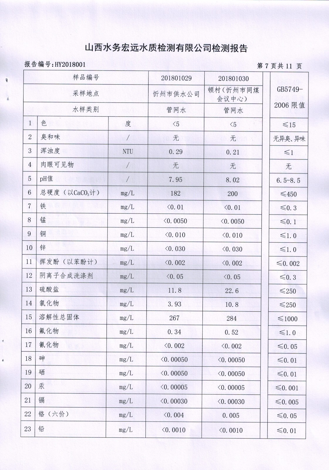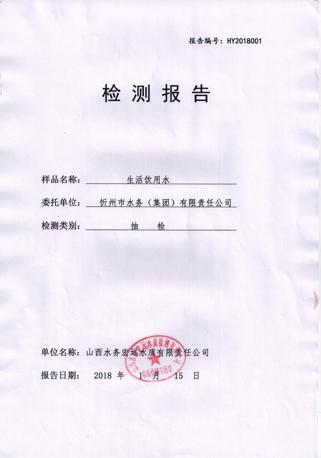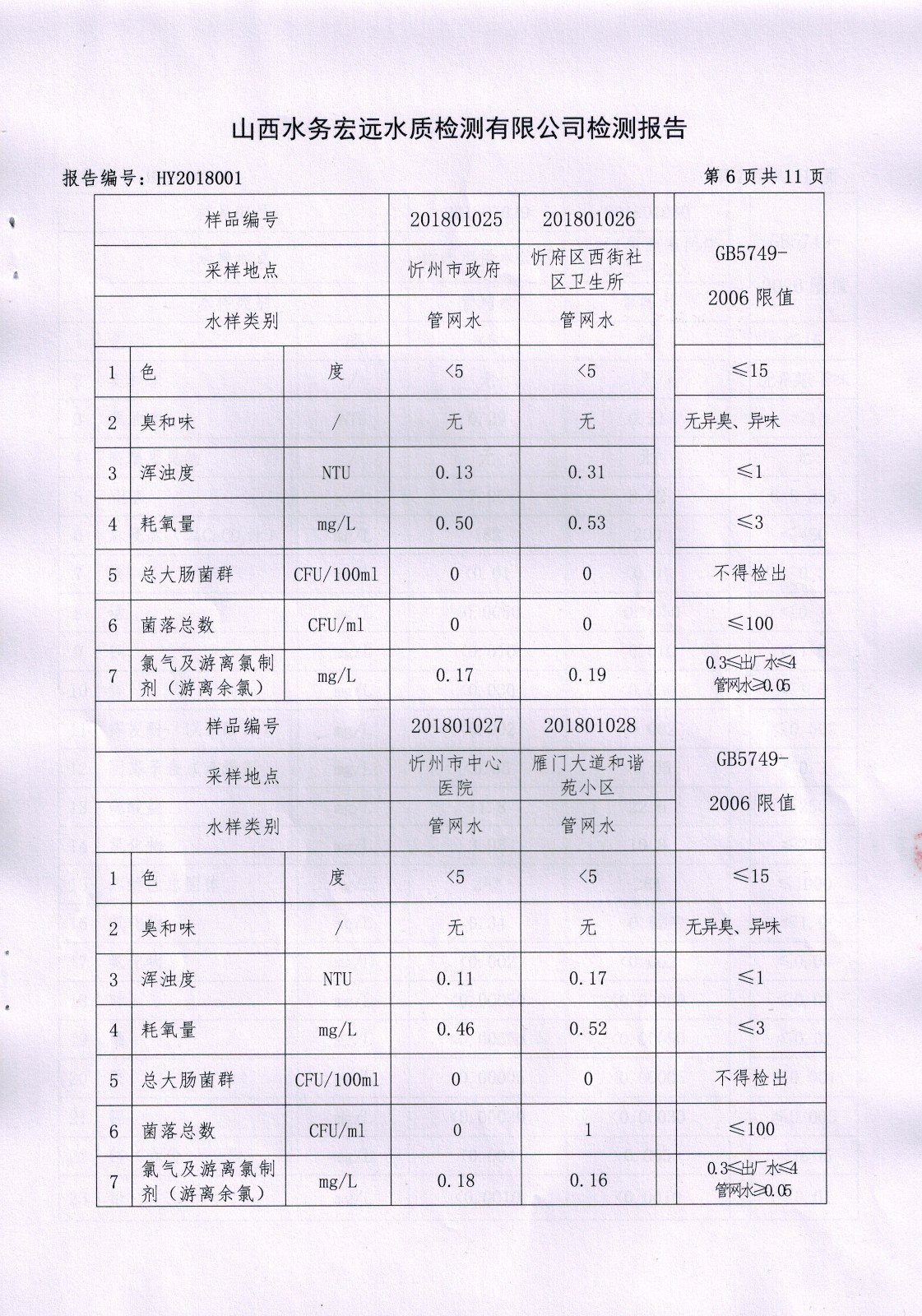 忻州城區(qū)公共供水水源水、出廠水、管網(wǎng)水、管網(wǎng)末梢水2018年1月份水質信息公示