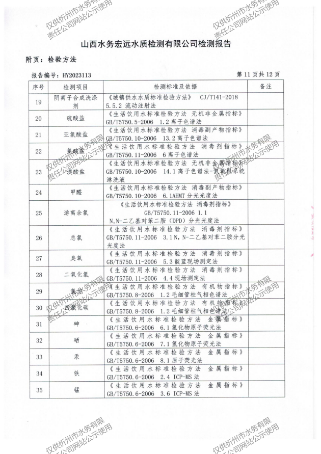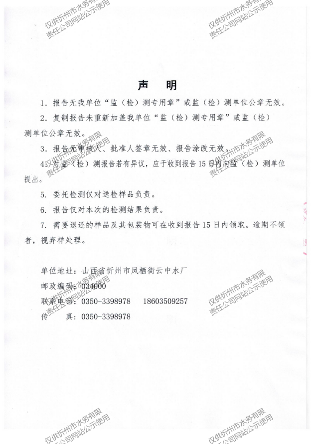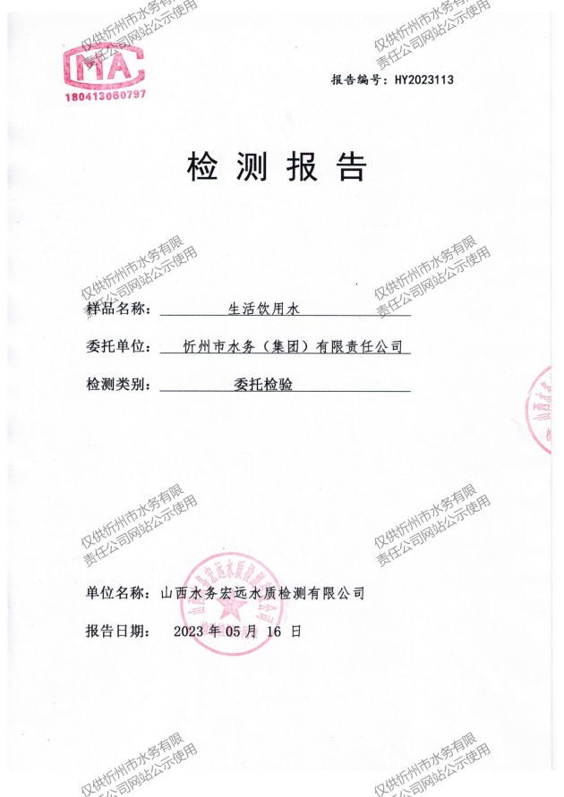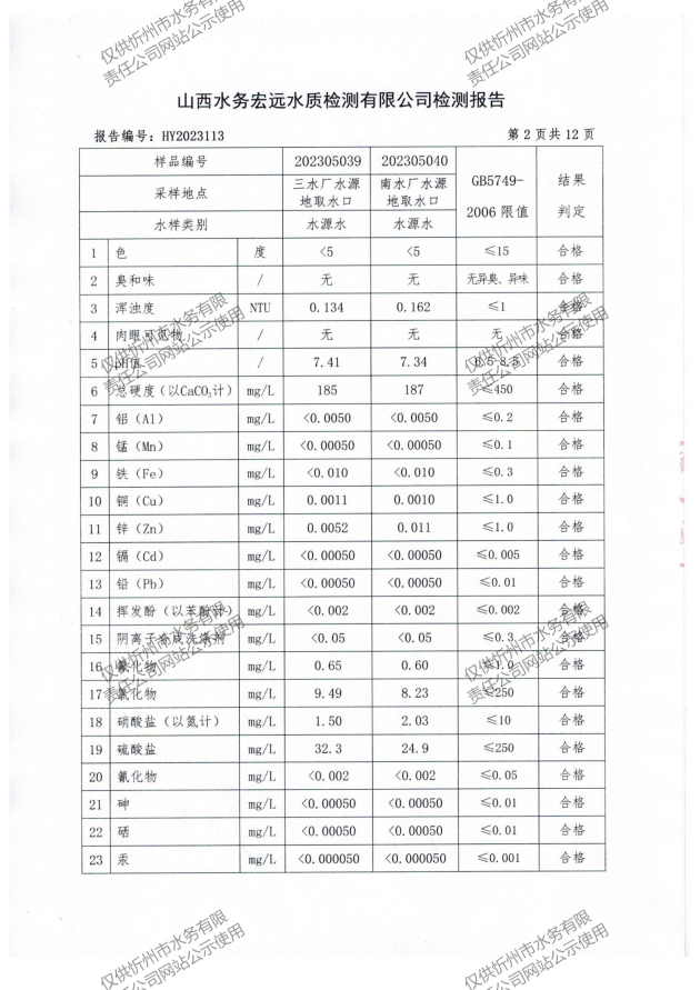 忻州城區(qū)公共供水水源水、出廠(chǎng)水、管網(wǎng)水、管網(wǎng)末梢水2023年5月份水質(zhì)信息公示